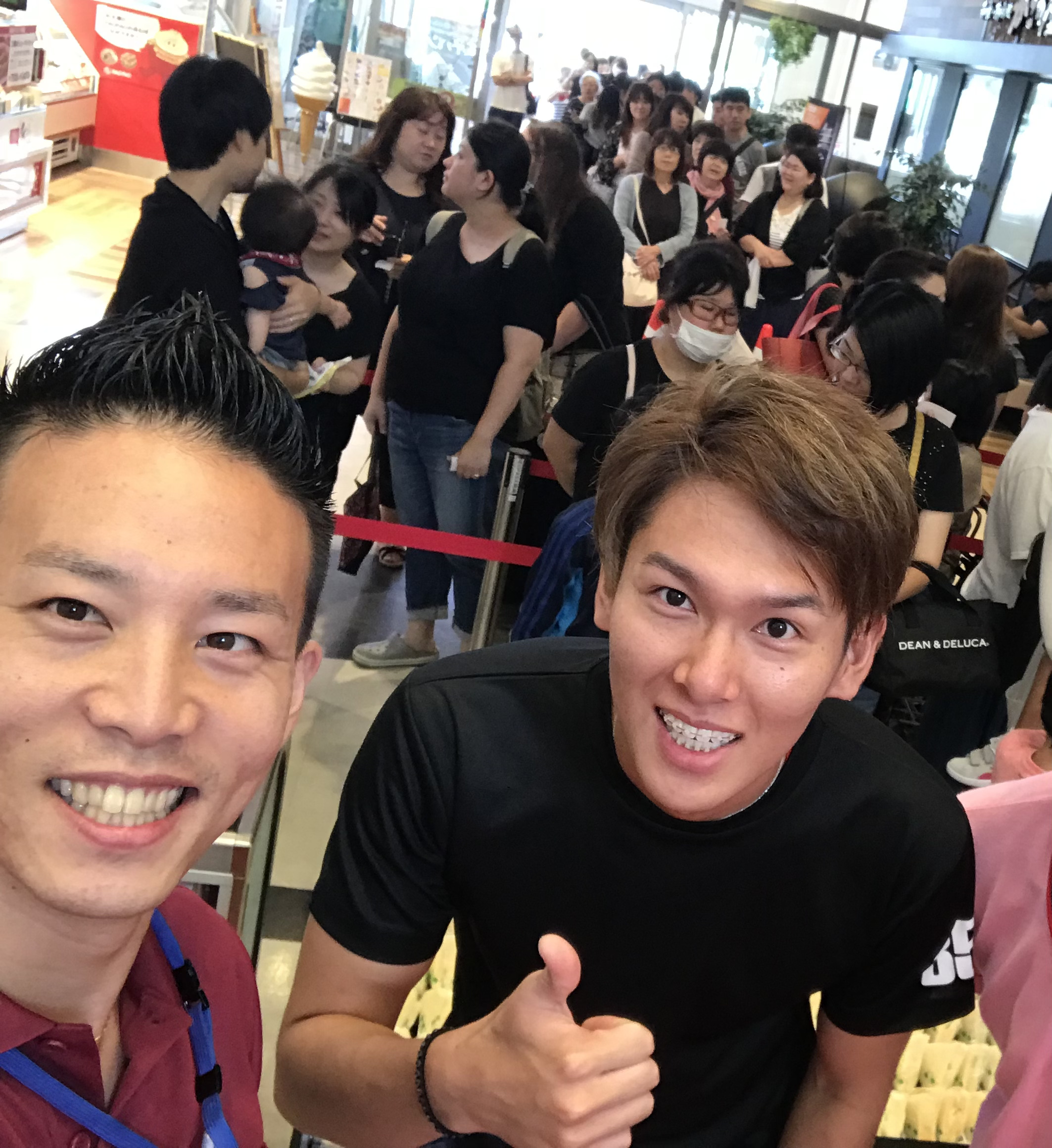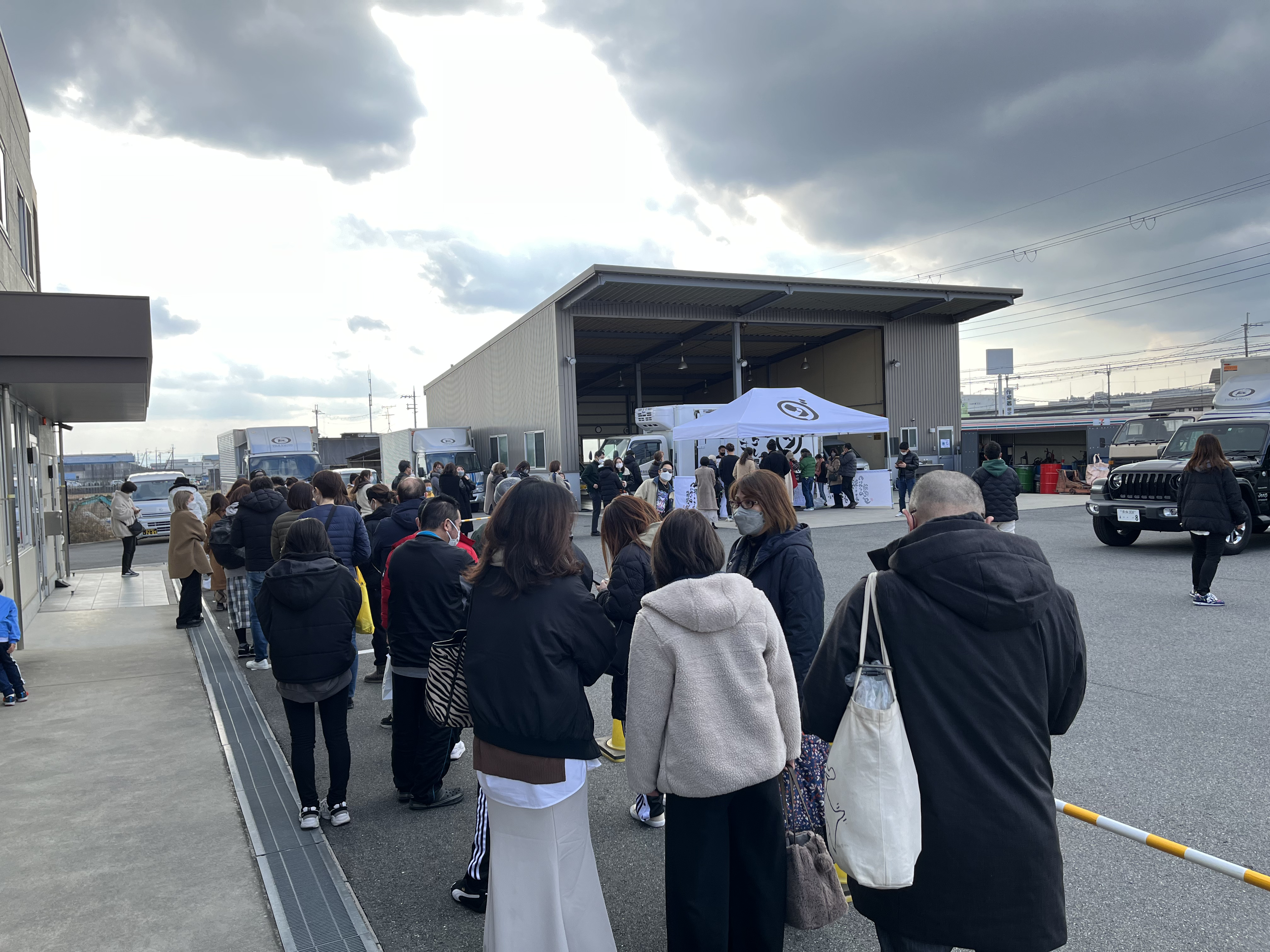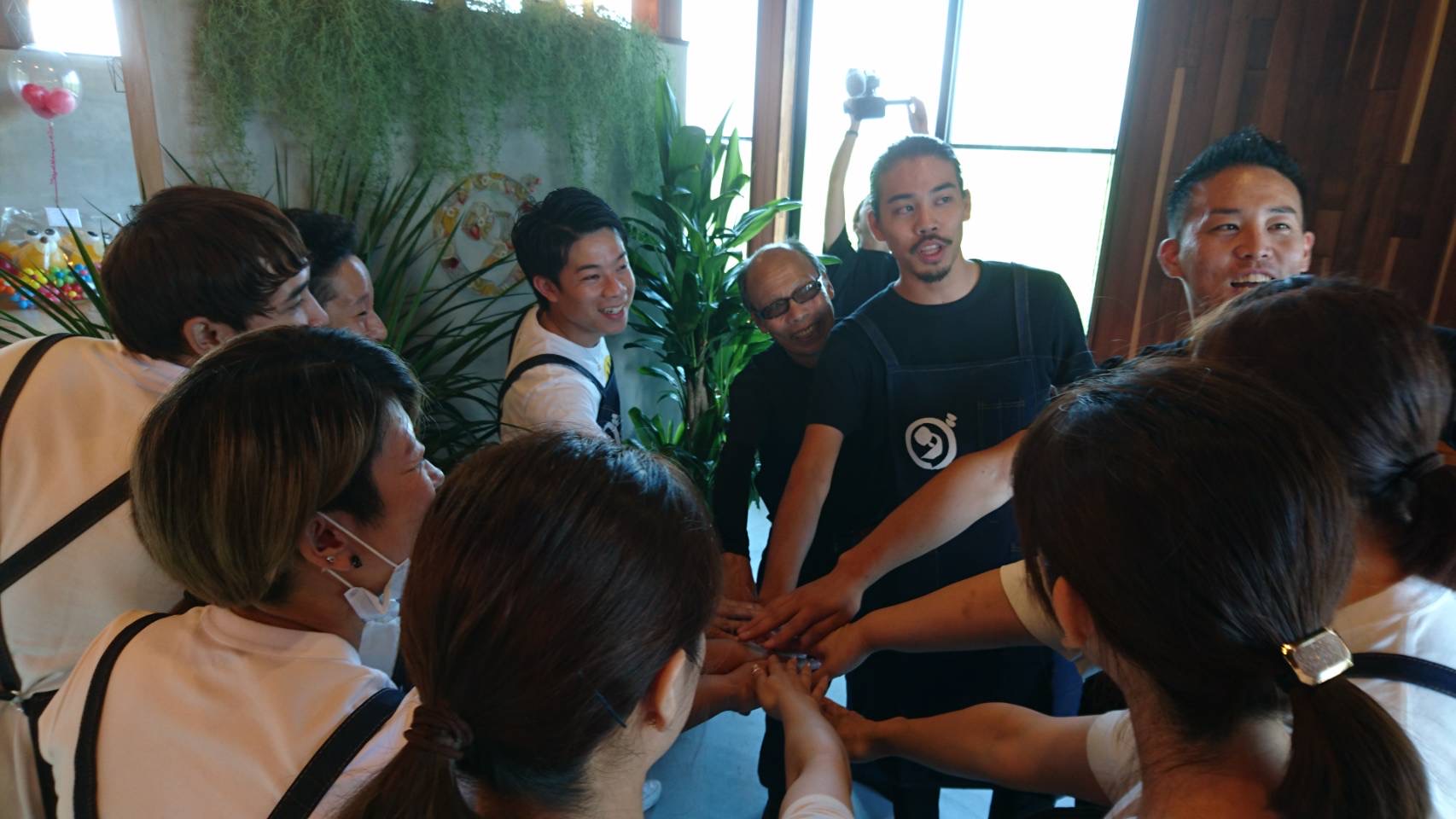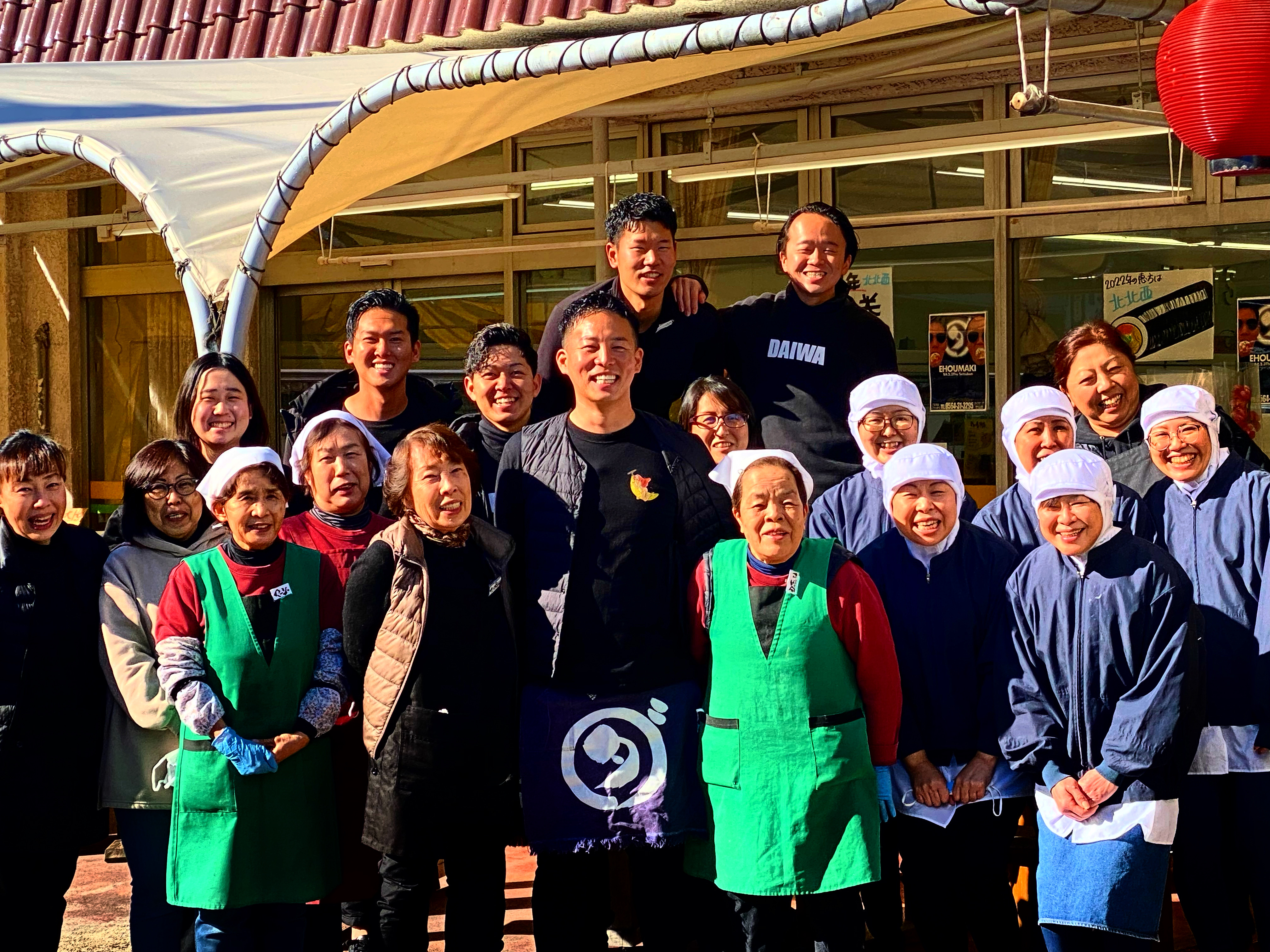 - 気合いの円陣でスタートさせる 300人を超える長蛇の列ができた