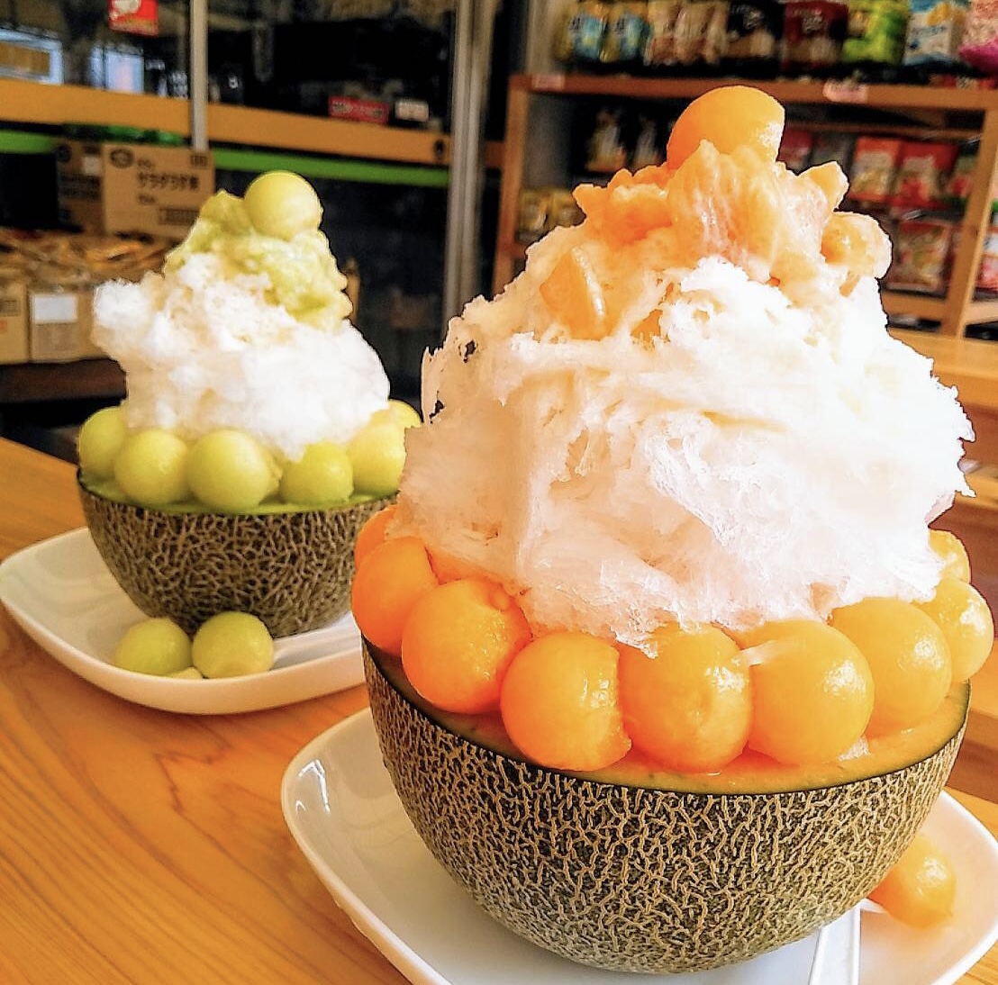 - メロンを器にしたかき氷