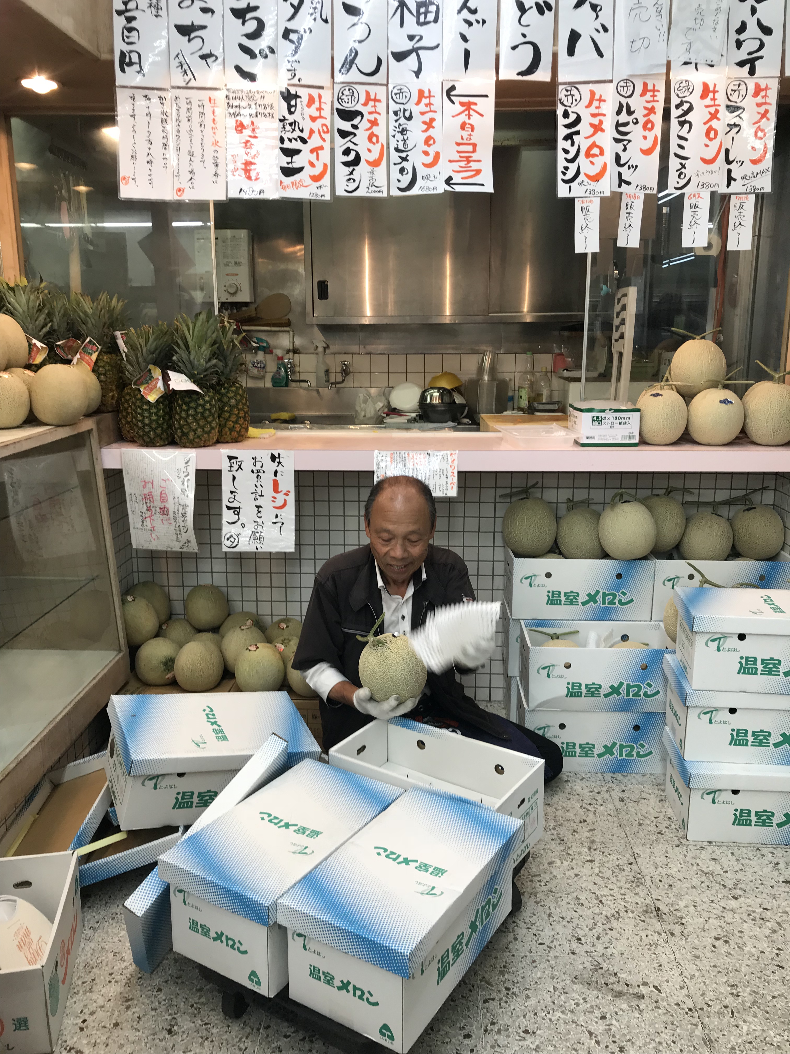 - 大量に積まれたメロン